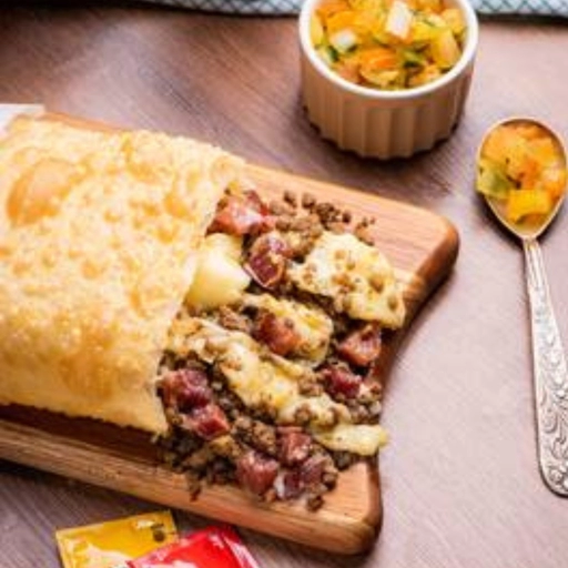 carne moída, ovo, milho, queijo, calabresa e palmito. É o Bartô sem limites no recheio