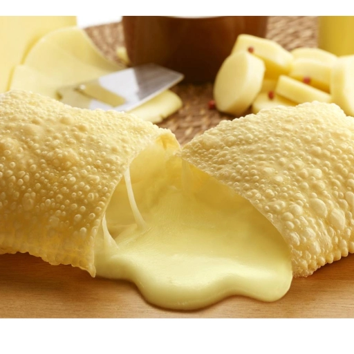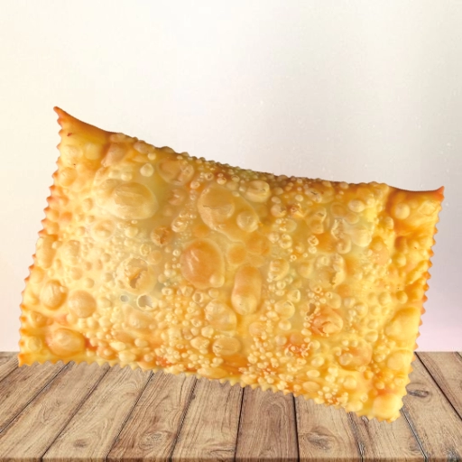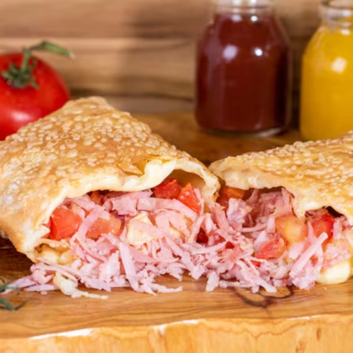 mussarela, presunto, molho temperado e o toque especial do orégano. O sabor de pastel raiz